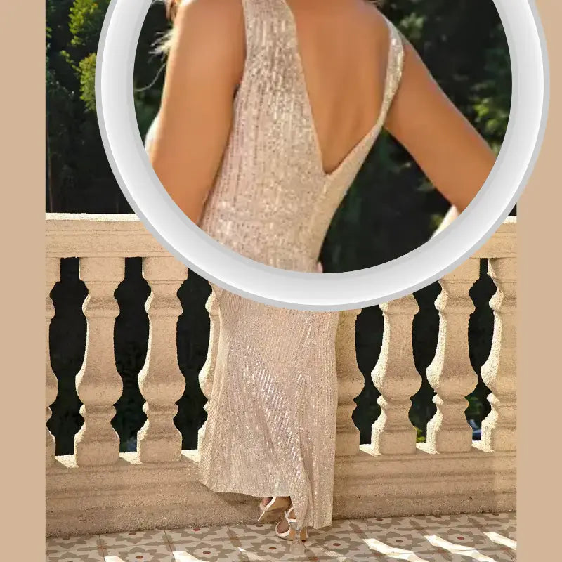 With its ankle-length and slim fit, this sexy and club-style dress is adorned with sequins, adding a touch of glamour. The convenient zipper closure ensures easy wear, making it an ideal choice for any elegant occasion.