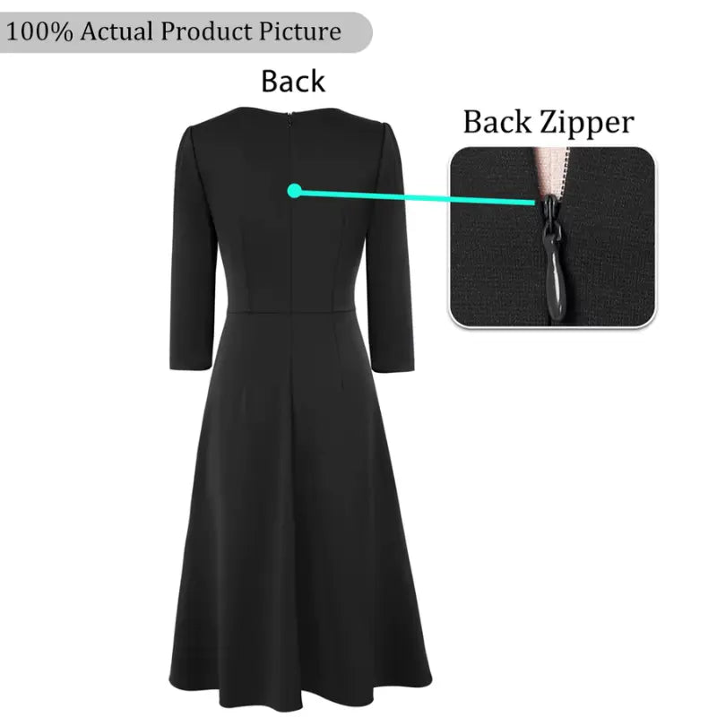 Easy Care Fabric: Crafted from durable material, this Office Midi Dress is designed for easy care and long-lasting wear.